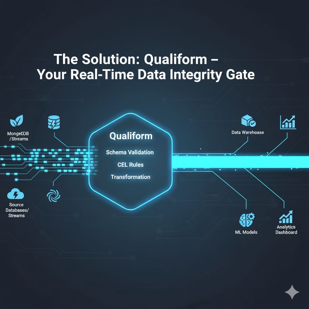 Qualiform acts as your always-on data quality enforcement point, sitting directly on your most critical data streams. We ensure every single event adheres to your predefined data contracts and business rules, in real-time, at the source